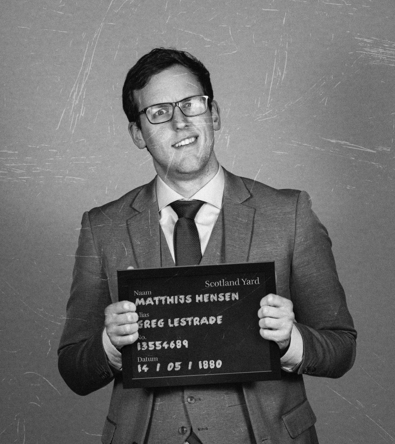 In Sherlock Holmes en de Zaak Watson speelt Matthijs de rol van Inspecteur Greg Lestrade: scherp, standvastig en altijd in de weer met een zaak die nét groter is dan hij had gehoopt.